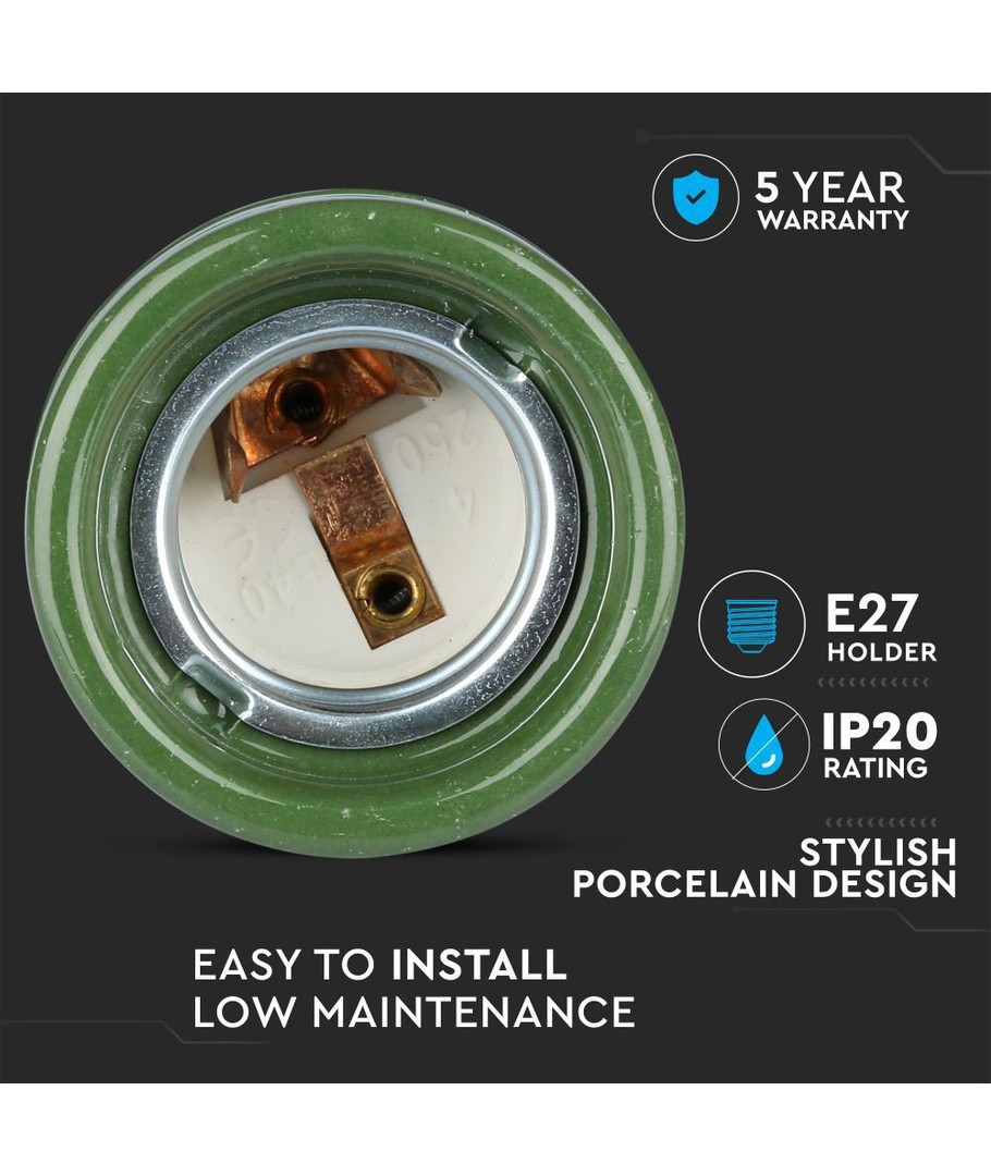 E27 fatning i grøn porcelæn - Max 60W, Ø4,7 x 6,4 cm, IP20 indendørs V-TAC Udvid
