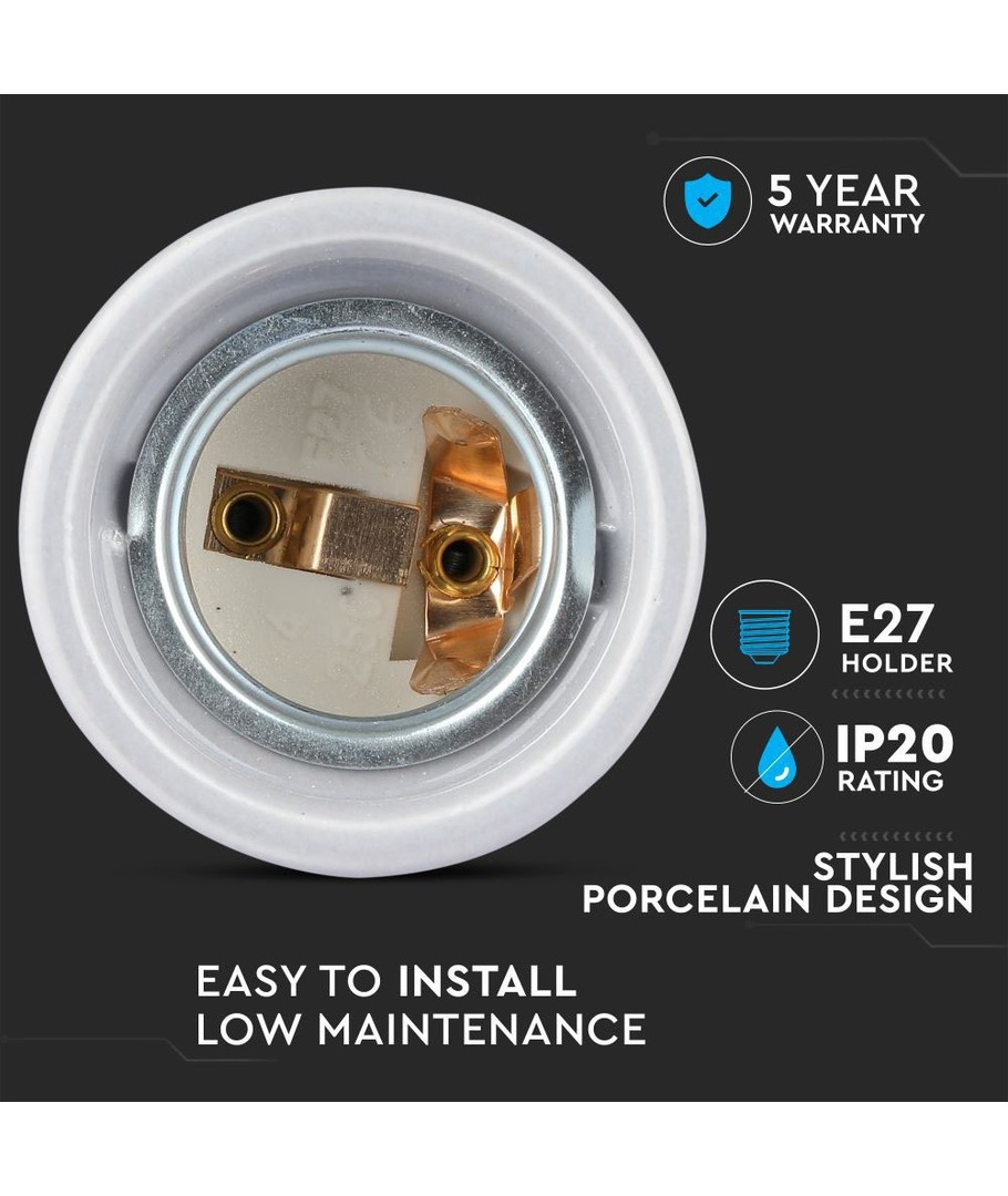Porcelæns Lampeholder E27 - Lampe, Grå V-TAC Udvid