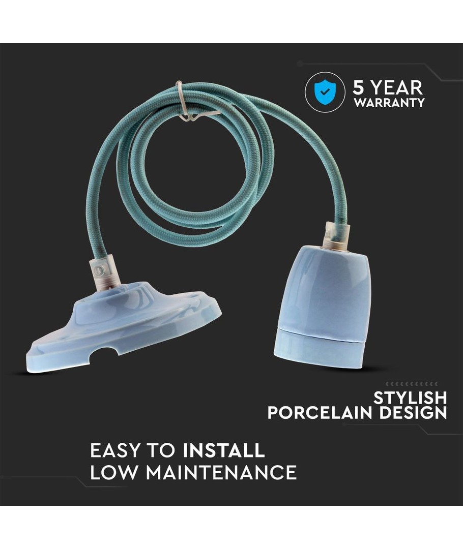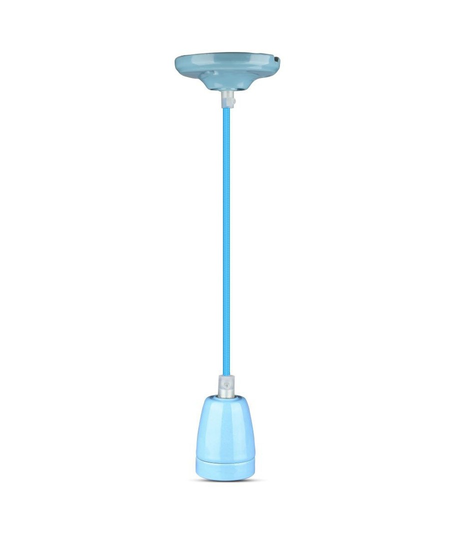 E27 fatningssæt i porcelæn, blå - Max 60W, Ø10,5cm, inkl. ledning, pendelophæng V-TAC Udvid