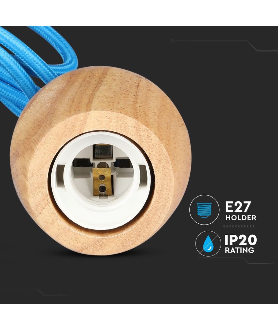 E27 pendelophæng i træ med blå ledning - Max 60W, elegant design, uden lyskilde V-TAC Udvid