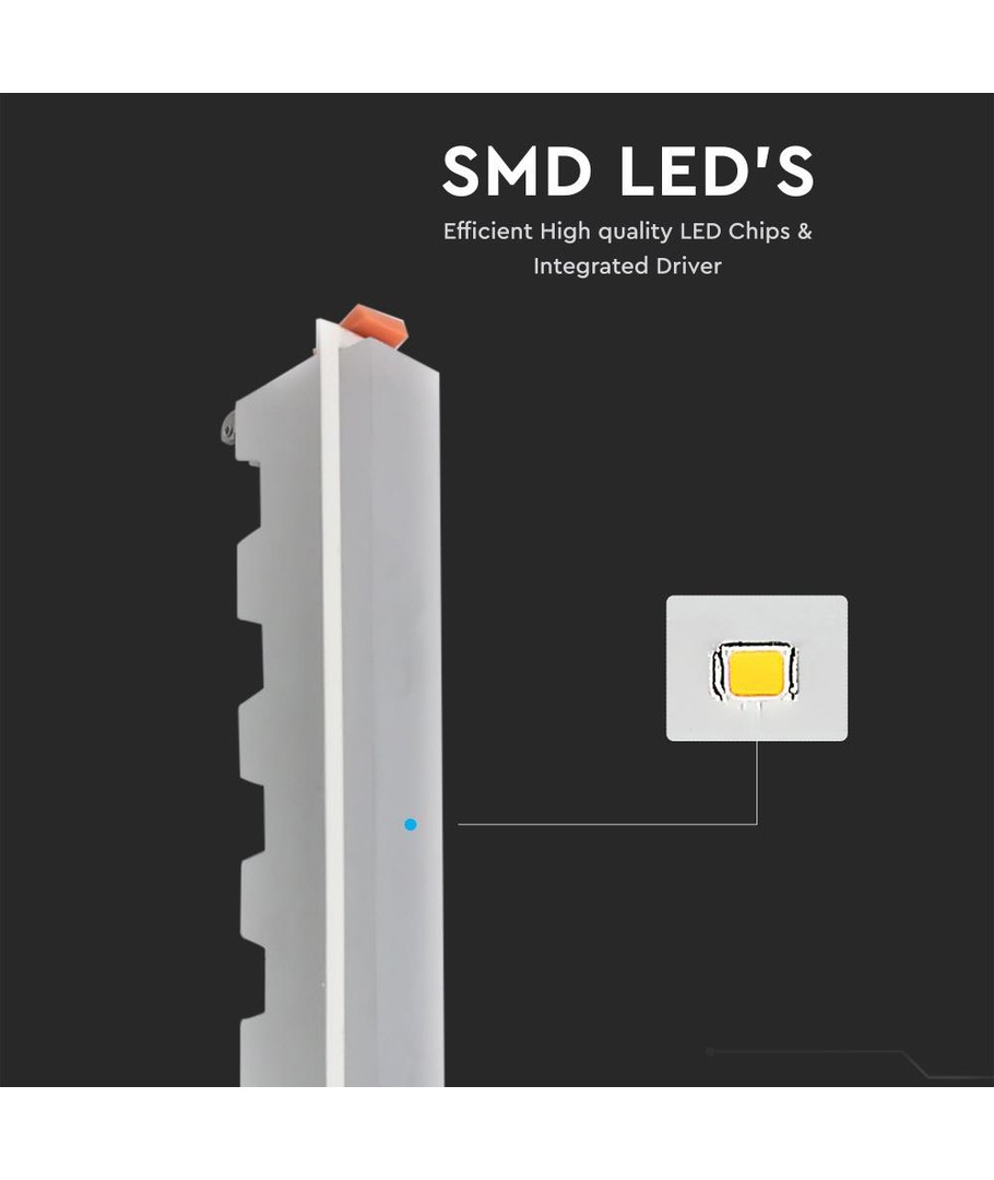 Vores 30W LED lineær lysarmatur er designet til dig, der ønsker en pålidelig og energibesparende lysløsning. Med en effekt på 30W og en lysstyrke på 2100 lumens får du en kraftig, men blød belysning. Den høje spredning på 160 grader sikrer en jævn fordeling af lyset i hele rummet.