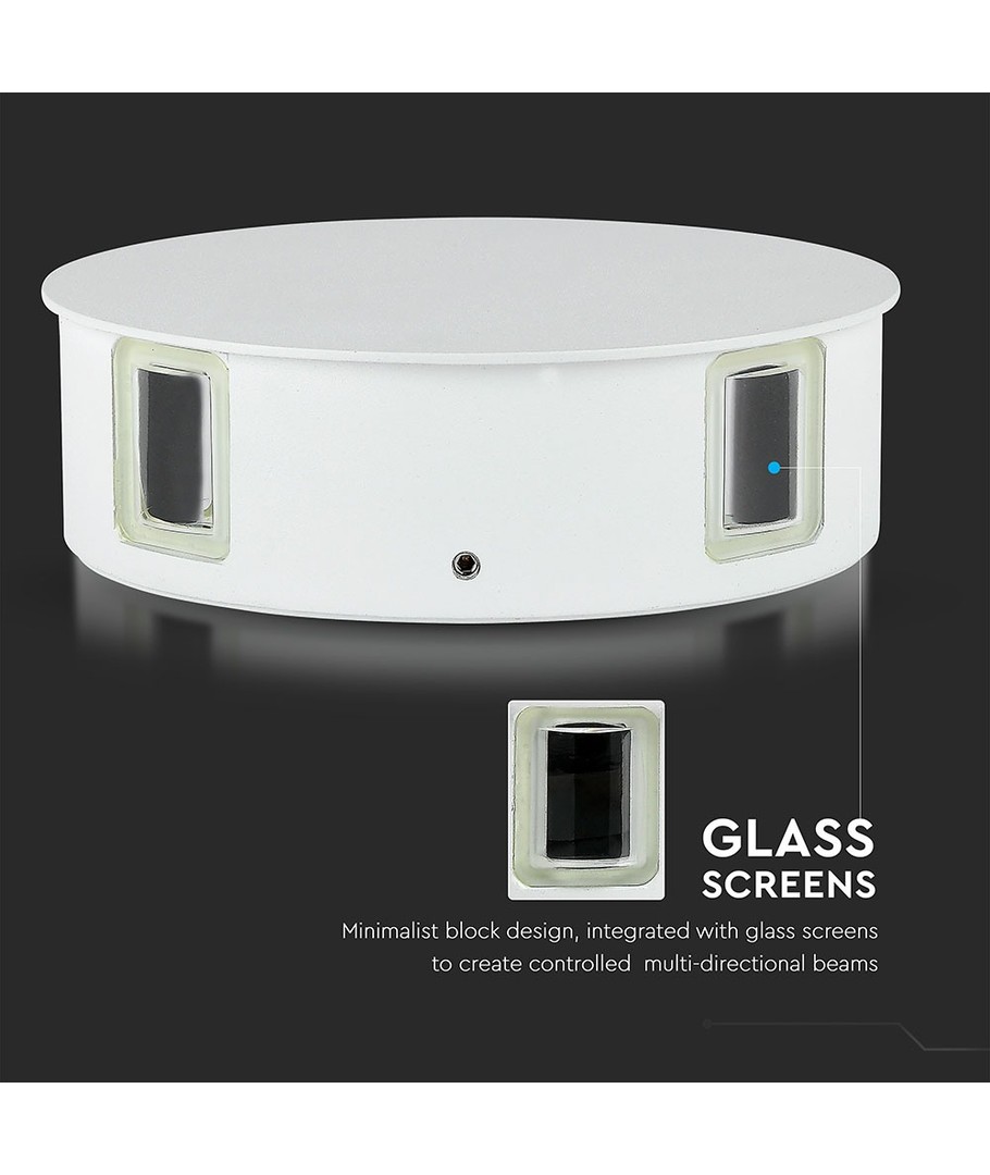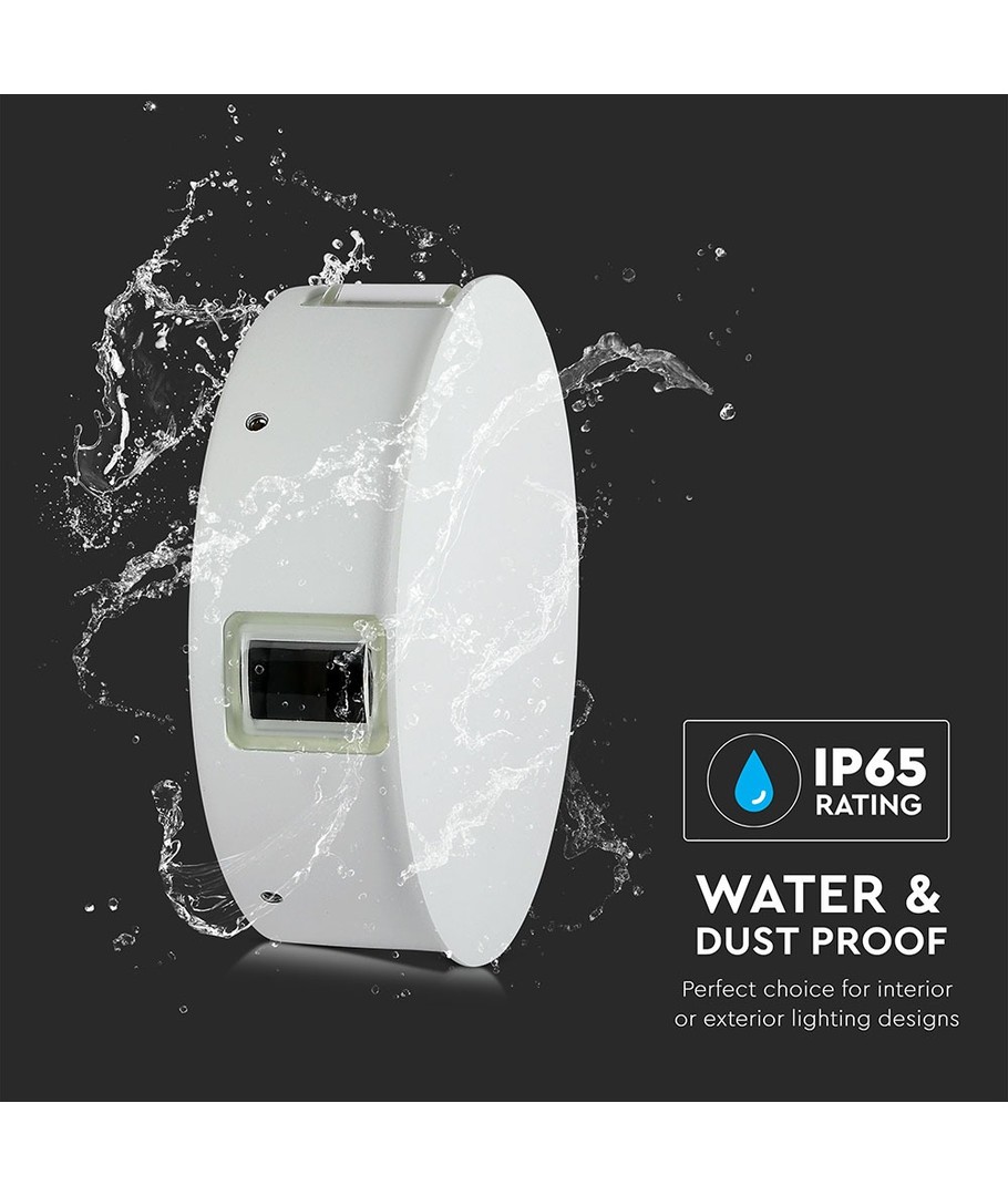 Med sin runde form og neutrale hvide farve er denne væglampe en diskret, men effektfuld tilføjelse til enhver facade eller indretningsstil.