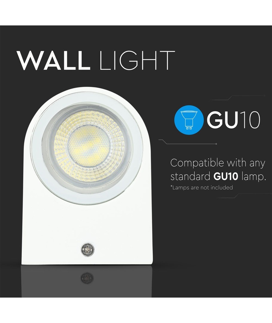 1-vejs væglampe GU10 - aluminium, rundt, hvidt hus, IP44 V-TAC Udvid