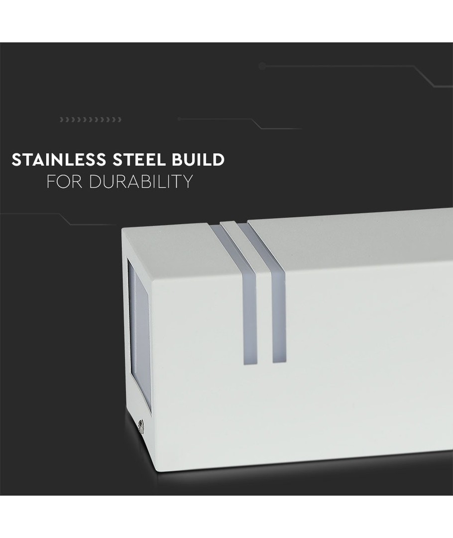 Oplev den perfekte kombination af stil og funktion med denne moderne 2-vejs GU10 væglampe fra V-Tac Pro serien. Denne lampe er designet med et firkantet rustfrit stål hus og en hvid finish, der passer perfekt ind i enhver indretning.