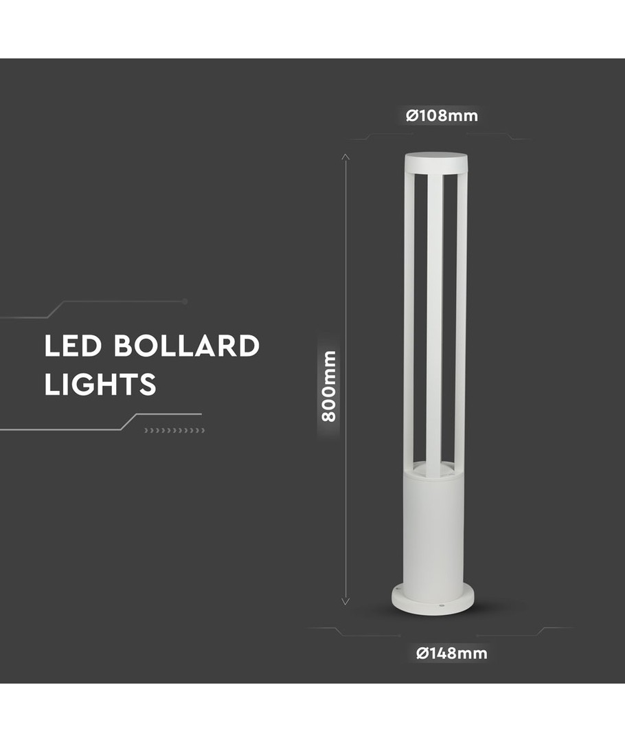 Med dimensionerne 800 x 108 mm, passer denne pullertlampe perfekt i forskellige omgivelser uden at virke dominerende. Den er designet med en integreret lyskilde, hvilket gør installation og vedligeholdelse til en leg.