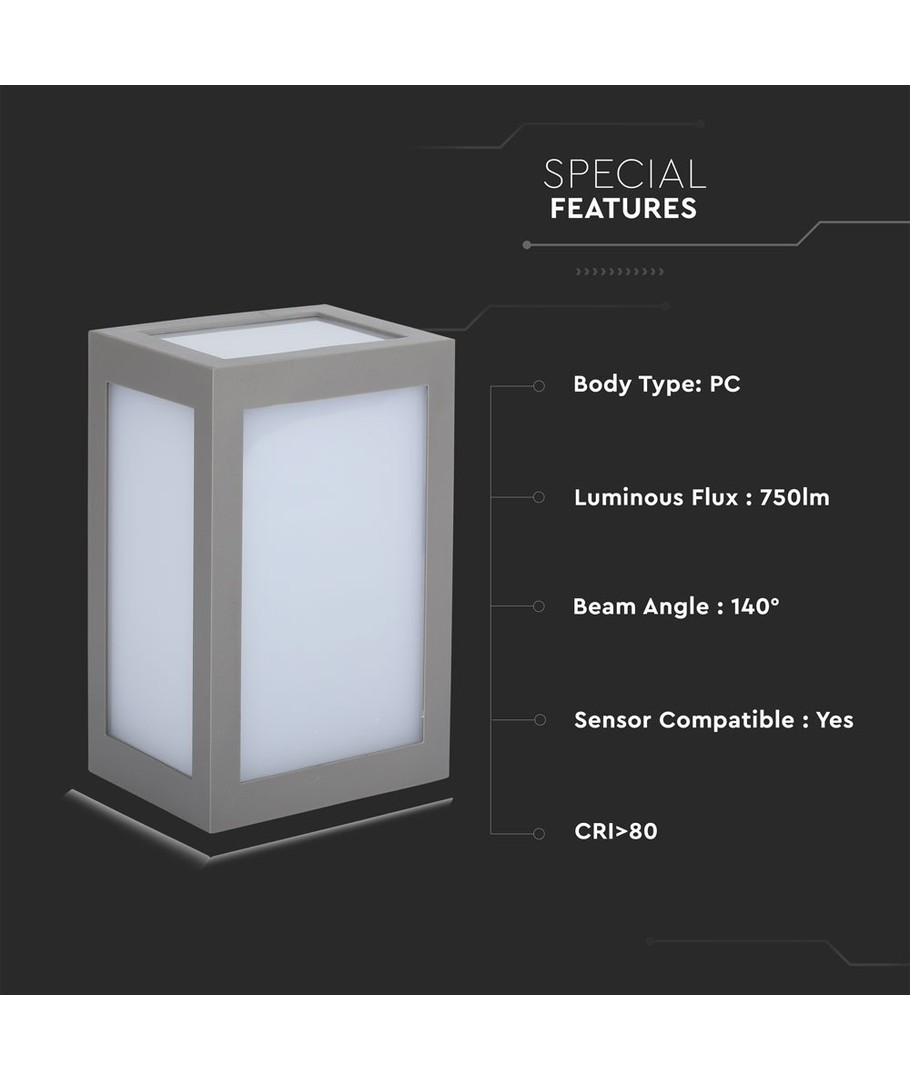 Den stilfulde grå hus sikrer, at lampen passer ind i en bred vifte af arkitektoniske miljøer samtidig med at den tilføjer en moderne følelse. Denne væglampe er en fremragende løsning til enhver, der kræver både funktionalitet og æstetik i belysningen.