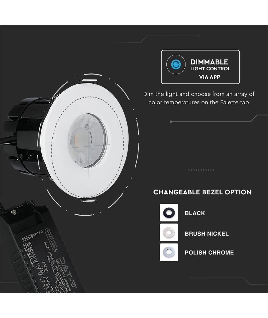 Oplev den ideelle belysningsløsning med denne smarte brandsikre downlight. Den er perfekt til både indendørs og udendørs brug takket være dens IP65-klassificering, hvilket betyder, at den er modstandsdygtig over for vandstænk og regn.