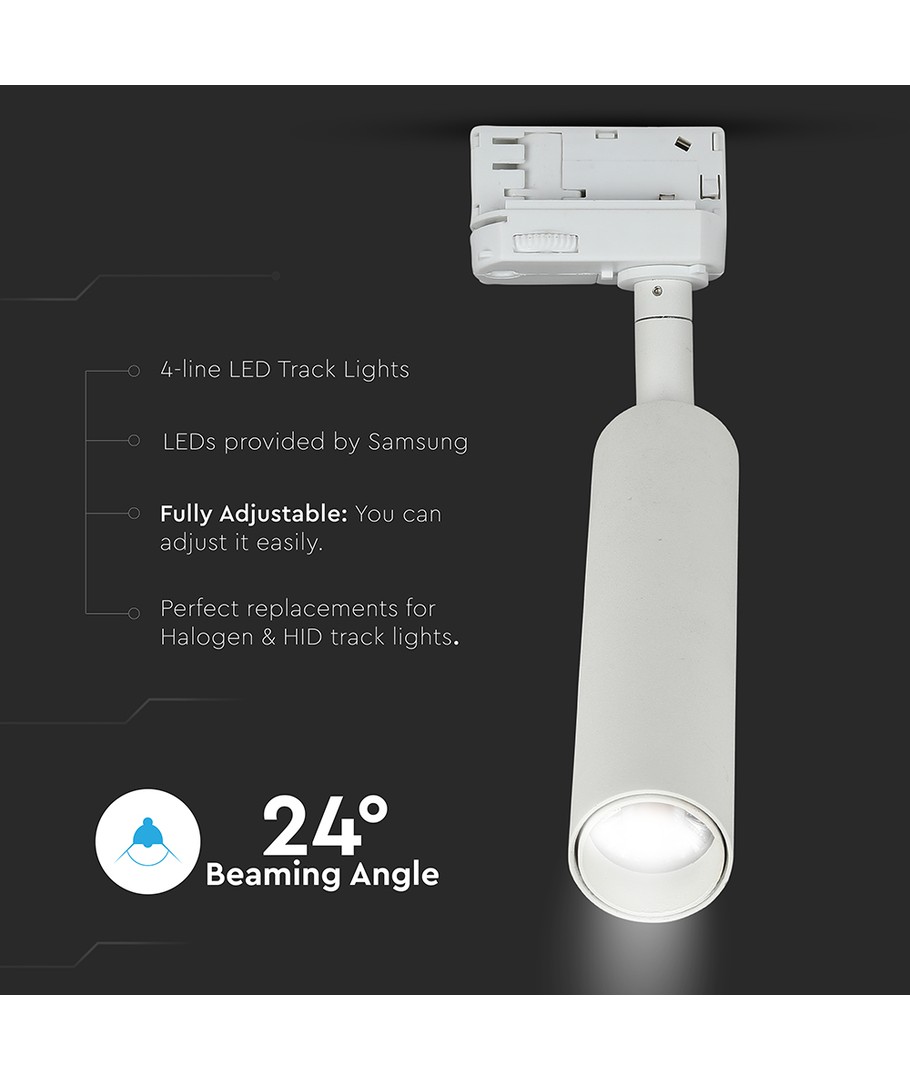 Oplev den ultimative belysning med denne LED skinnespot, der kombinerer høj kvalitet og pålidelighed. Skabt til et krævende miljø, sikrer den en lang levetid med minimalt lyskvalitetstab over tid.