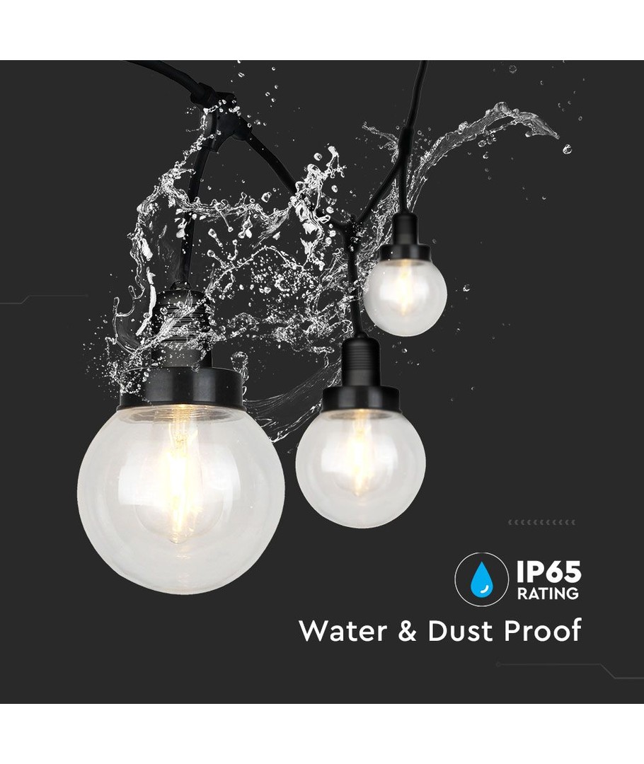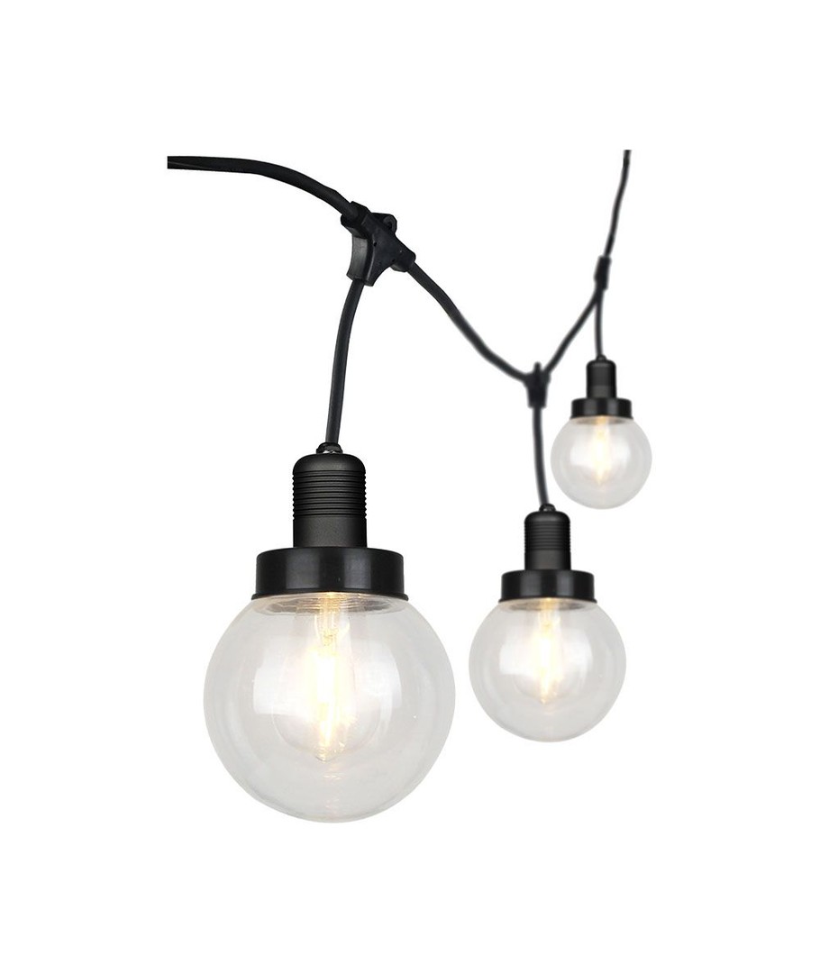 Den 3m E27 lyskæde med 6 kupler er en stilfuld og funktionel løsning til udendørs belysning, perfekt til at skabe en hyggelig atmosfære i haven eller på terrassen.