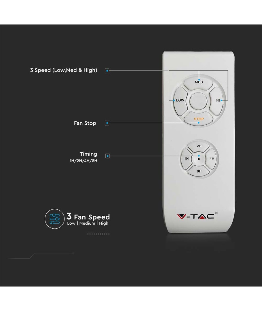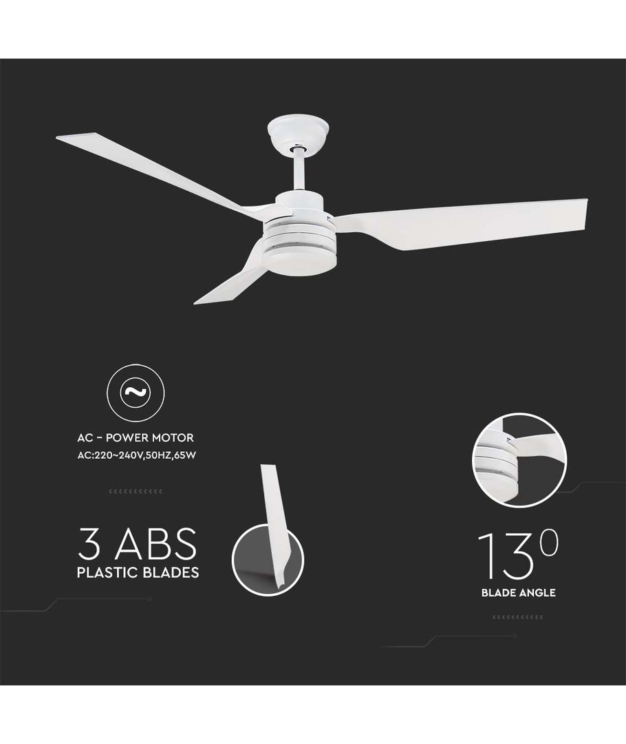 65W Loftventilator - Hvid med RF-kontrol, 3 hvide vinger, AC motor (52 tommer) V-TAC Udvid