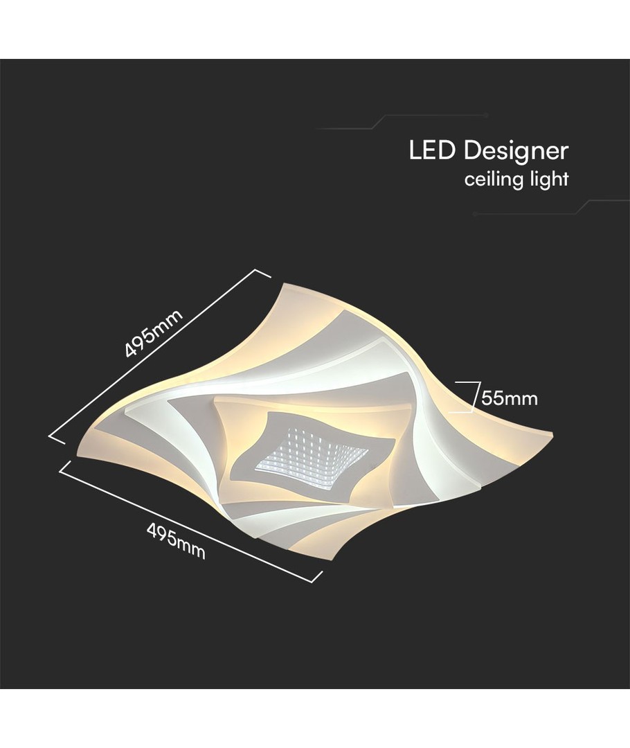 Med sit enkle og elegante hvide hus passer denne lampe perfekt ind i alle moderne hjem. Dens dimensioner på 495 x 55 x 495 mm gør den ideel til rum, hvor plads og stil er en prioritet.