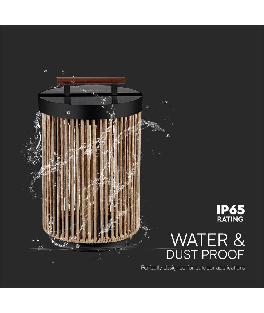 Unikt Design:Den sorte finish kombineret med hampegreb og træhåndtag gør lygten til en stilfuld tilføjelse til enhver udendørs indretning. Det naturlige look fungerer godt i både moderne og traditionelle haver.