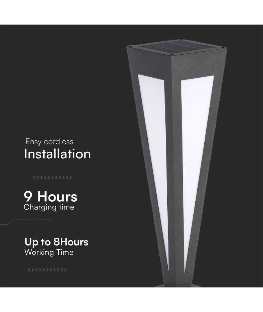 Denne havenlampe er let at installere, da den drives af solenergi og kræver ingen ledninger. Placer den i solen, og lad den op i løbet af dagen, så den kan lyse dine udendørs områder op om natten. Den er ideel til havegange, terrasser eller som dekoration i blomsterbede.