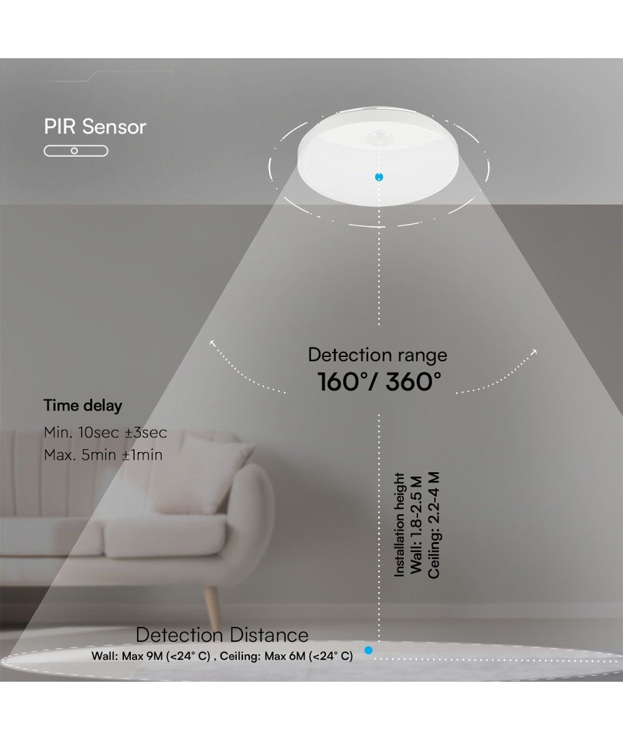 Med en PIR sensor kan lyset tænde automatisk ved bevægelse, hvilket gør det særligt praktisk til gange og indgangspartier, hvor automatisk belysning er ønsket.