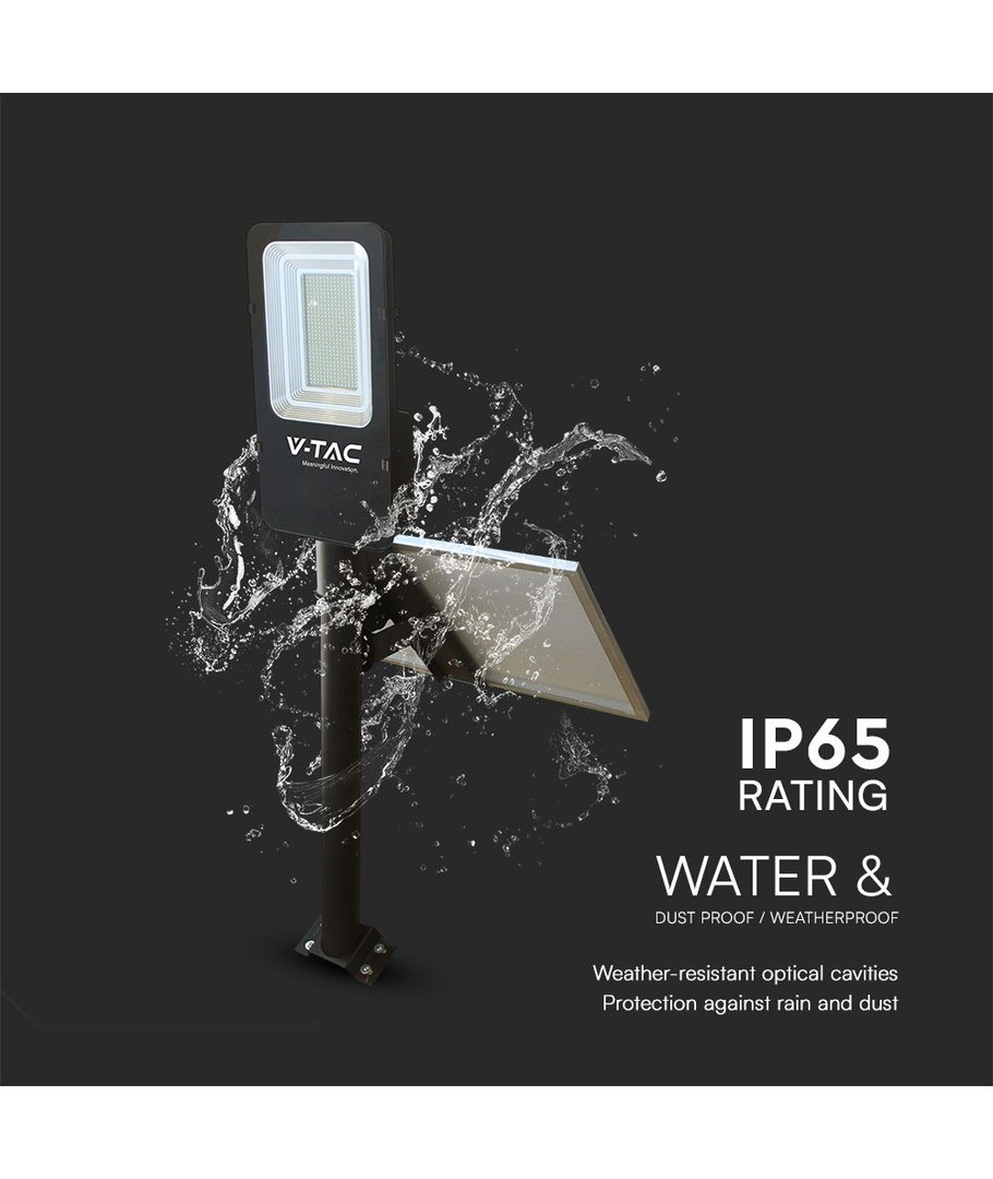 Med sin robuste IP65 klassificering er denne gadelampe perfekt til udendørs brug. Den er designet til at modstå vandstænk og regn, hvilket gør den pålidelig året rundt, selv under varierende vejrforhold.
