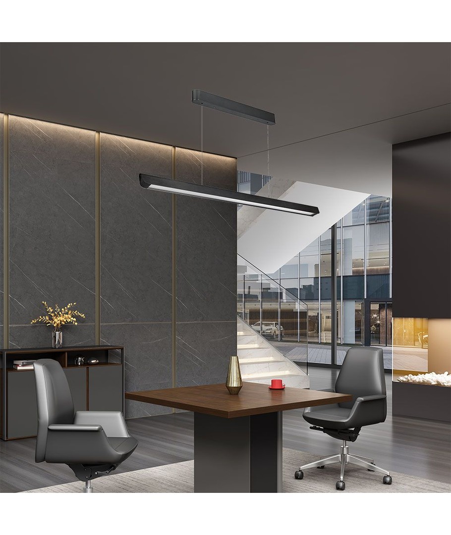 Oplev kvalitet og effektivitet med vores lineære hængende suspensionslys, der er ideelt til både kommerciel og privat brug. Med en effekt på 36W og en lysstyrke på 2880 lumens tilbyder dette lys en imponerende høj spredning på 100 grader, hvilket sikrer en jævn lysspredning i hele rummet.