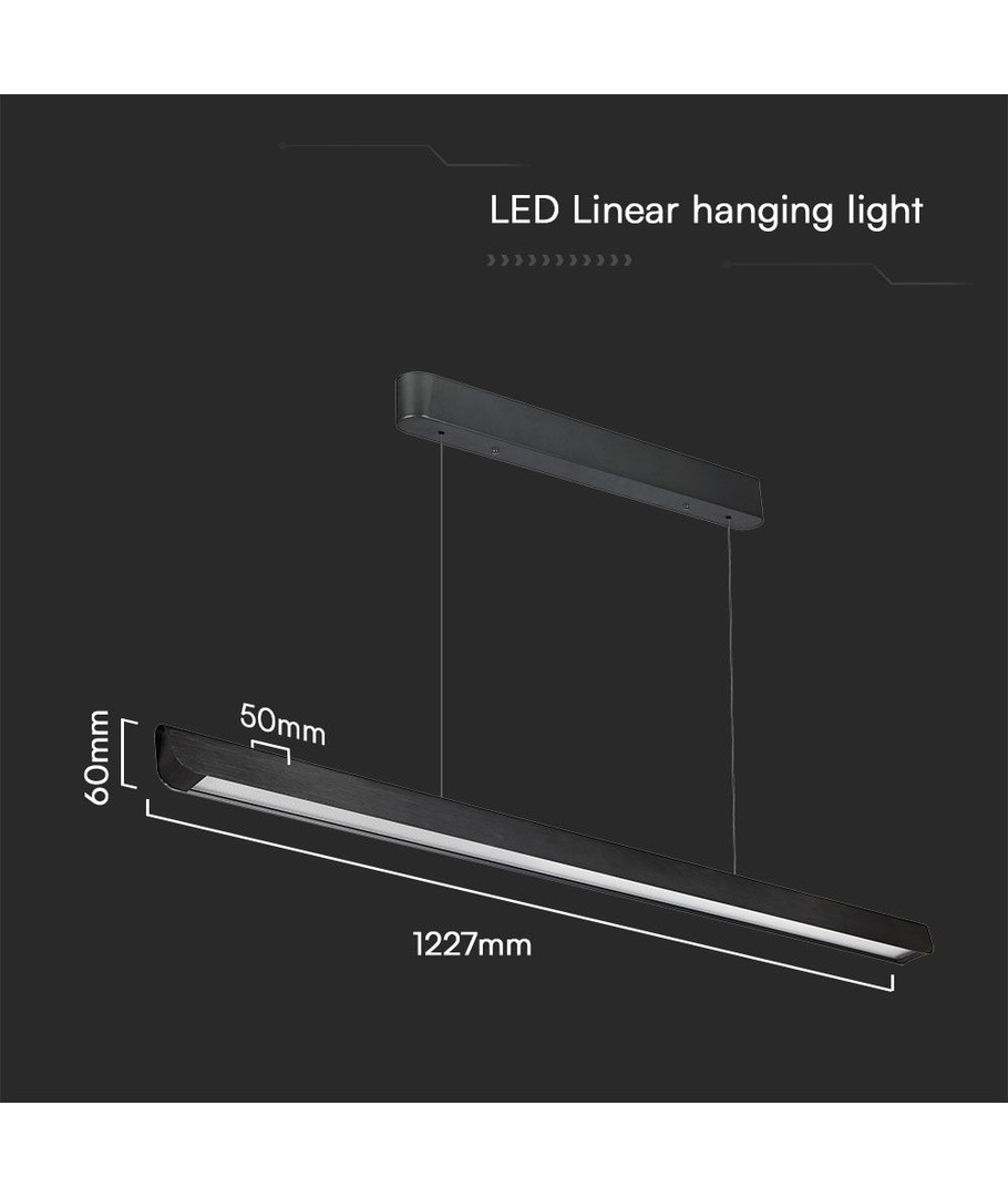 Det lineære lys har dimensionerne 1227 x 50 x 60 mm og kommer i en elegant sort finish, der let integreres i moderne indretninger. Bemærk, at produktet er IP20-klassificeret, hvilket betyder, at det ikke er modstandsdygtigt over for vand.