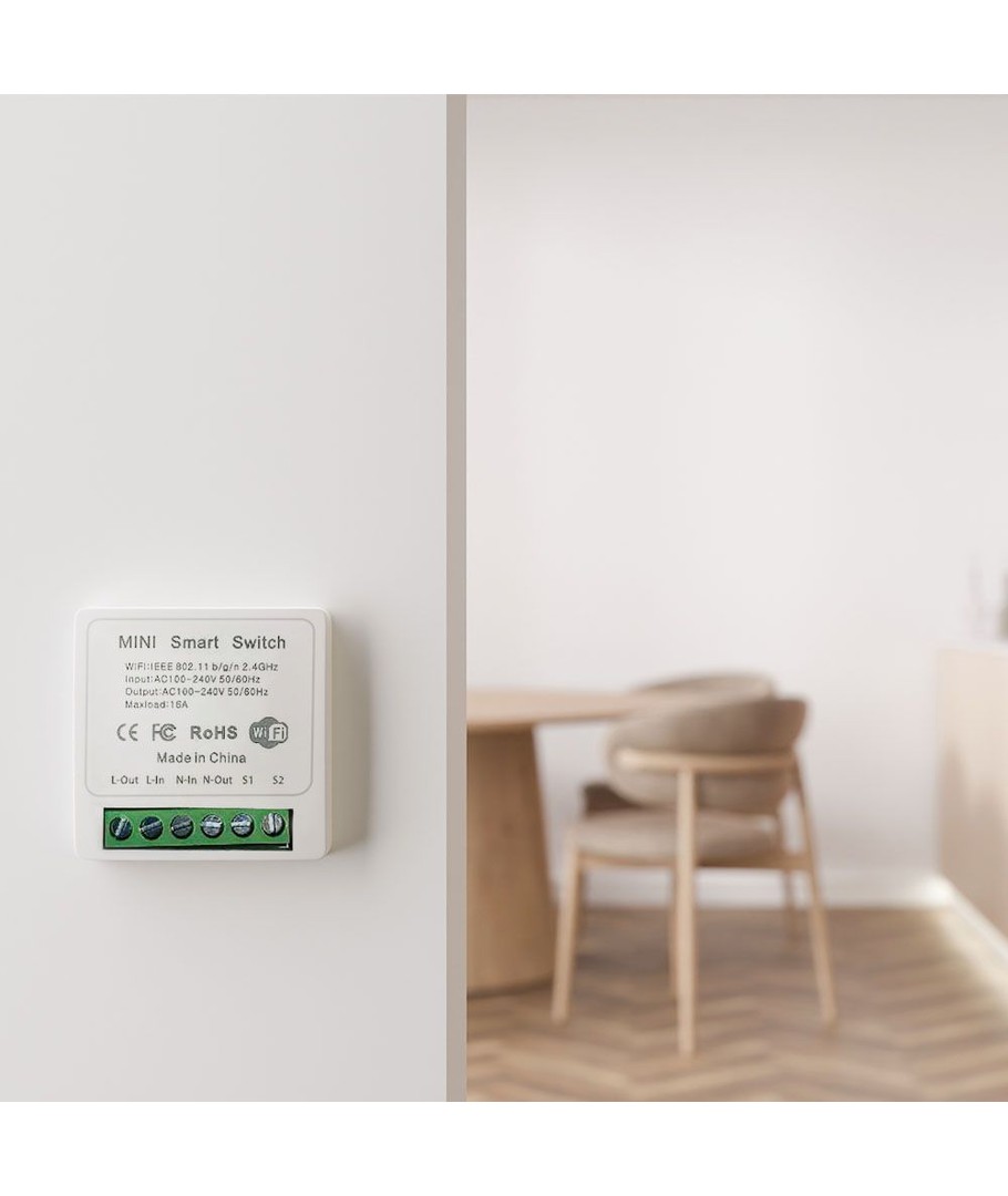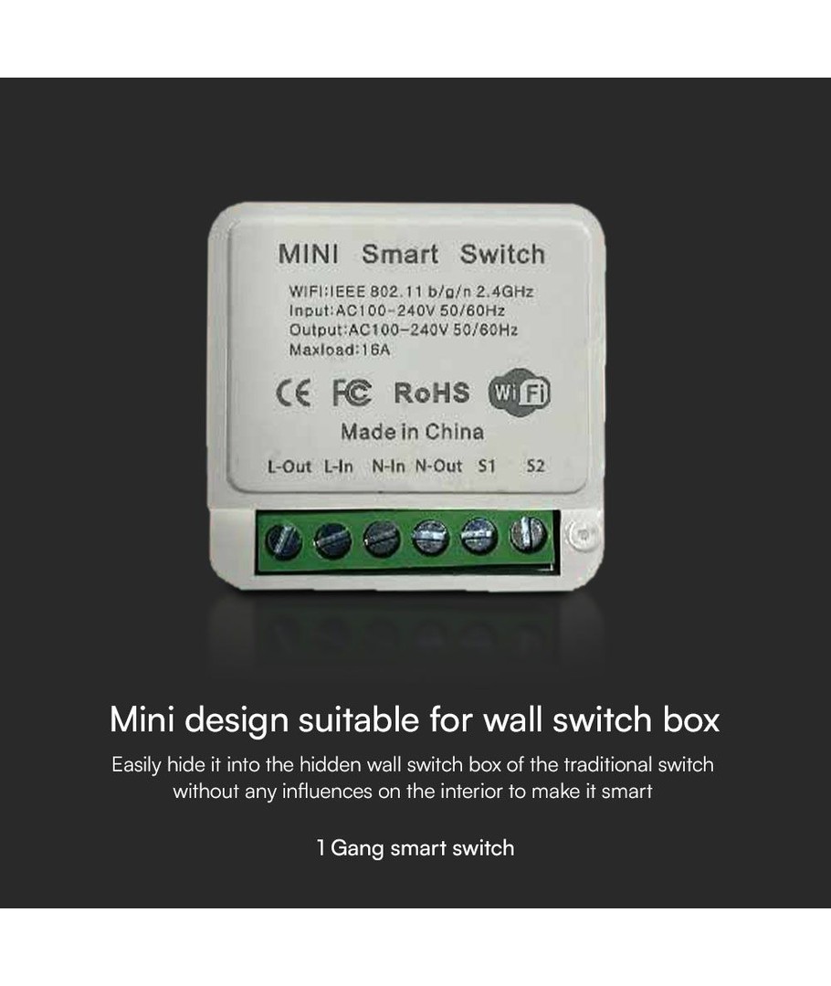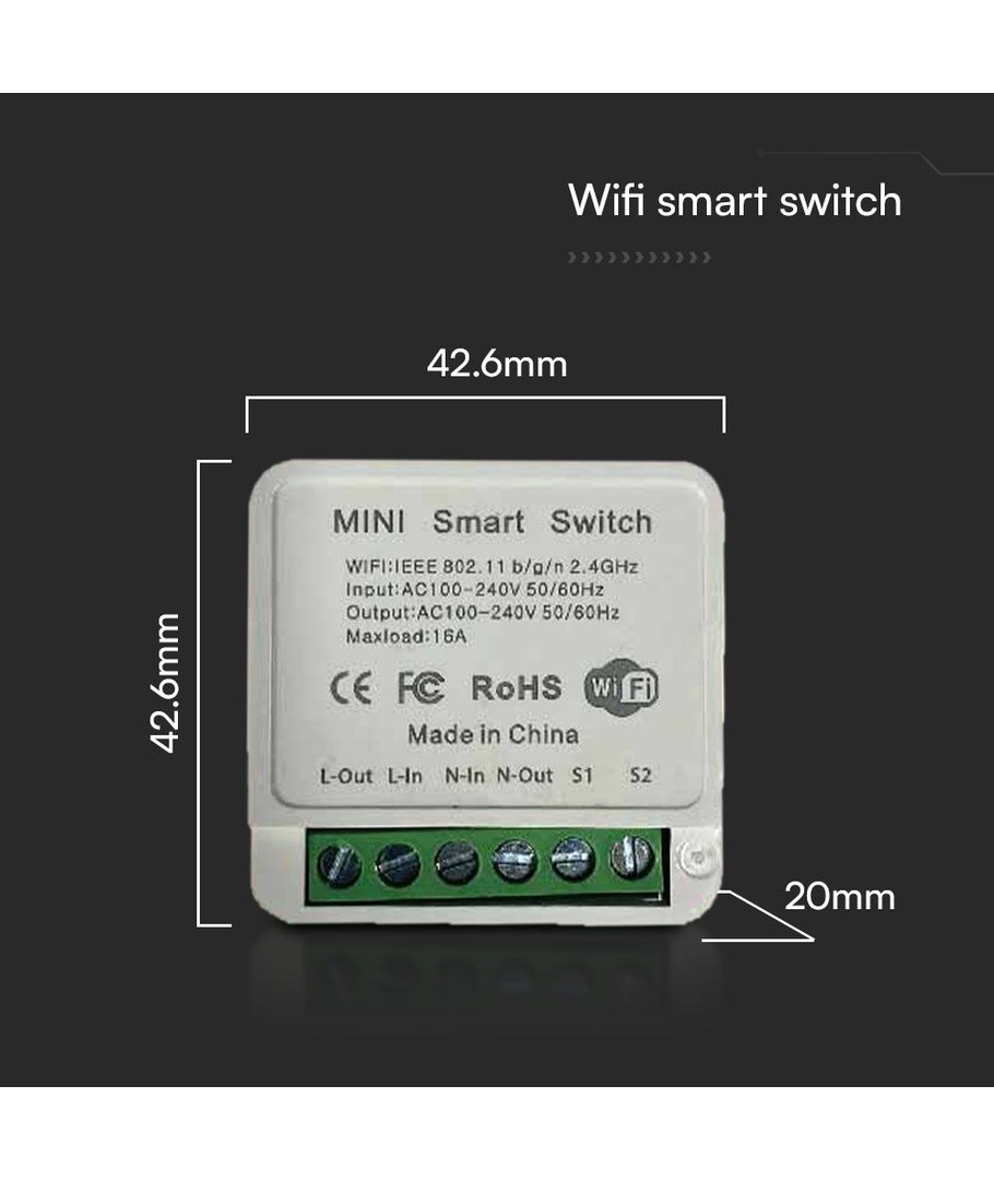 Wi-Fi Smart Switch, 10A - Mini on-line switch, 1 Gang, IP20, Smart Home styring V-TAC Udvid