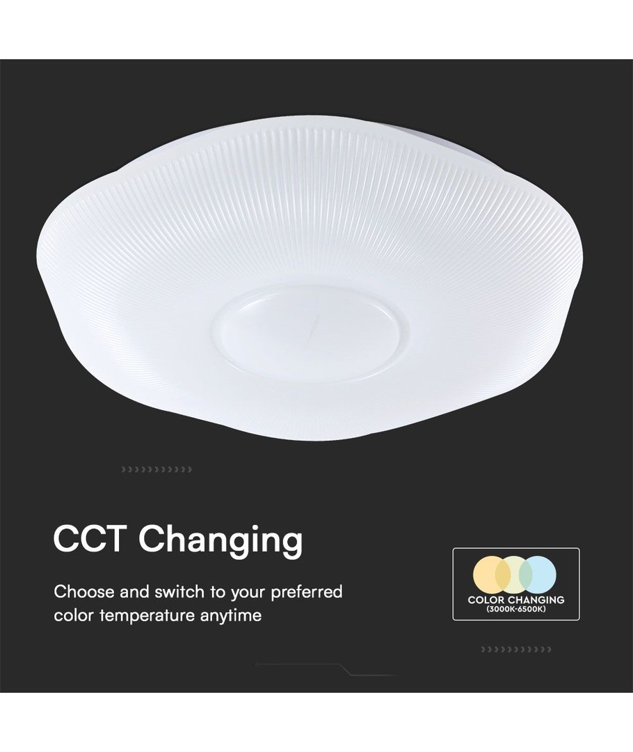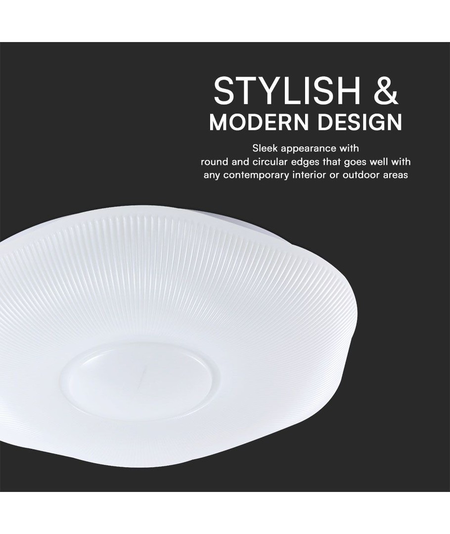 Med en effekt på 60W leverer lampen en imponerende lysstyrke på 6000 lumens, hvilket skaber lys, der både er klart og behageligt for øjnene. Du kan let tilpasse belysningen efter stemningen, da lampen er dæmpbar via den medfølgende fjernbetjening.