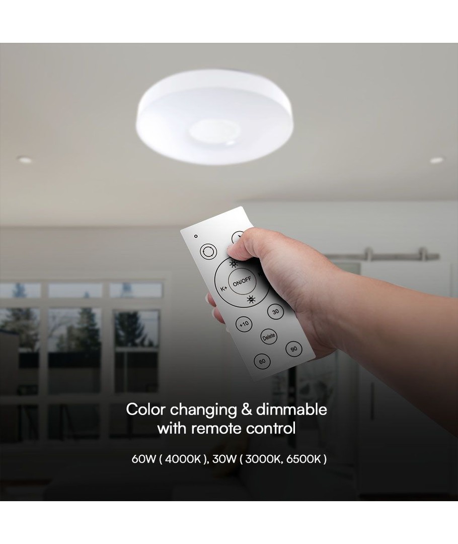 Med den medfølgende fjernbetjening kan du nemt justere lysets intensitet. Denne loftslampe er dæmpbar, hvilket betyder, at du kan tilpasse lysstyrken efter dine behov, uanset om det er til afslapning eller arbejde.