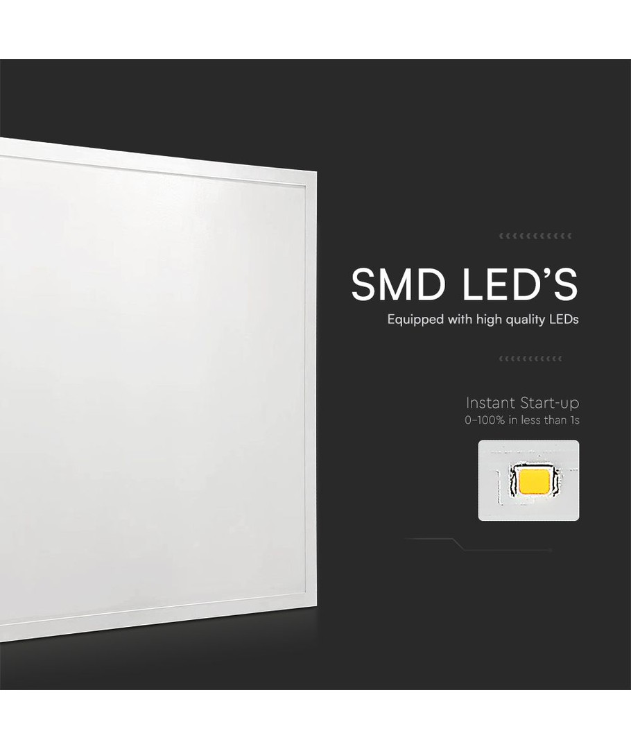 Den flimmerfri teknologi i dette panel forhindrer visuel belastning, hvilket gør det særligt egnet til arbejdsområder og steder, hvor komfortabel belysning er nødvendig. Det bruger LED af den højeste kvalitet for minimal reducering i lysstyrke over tid, hvilket sikrer et konstant godt lysudbytte.