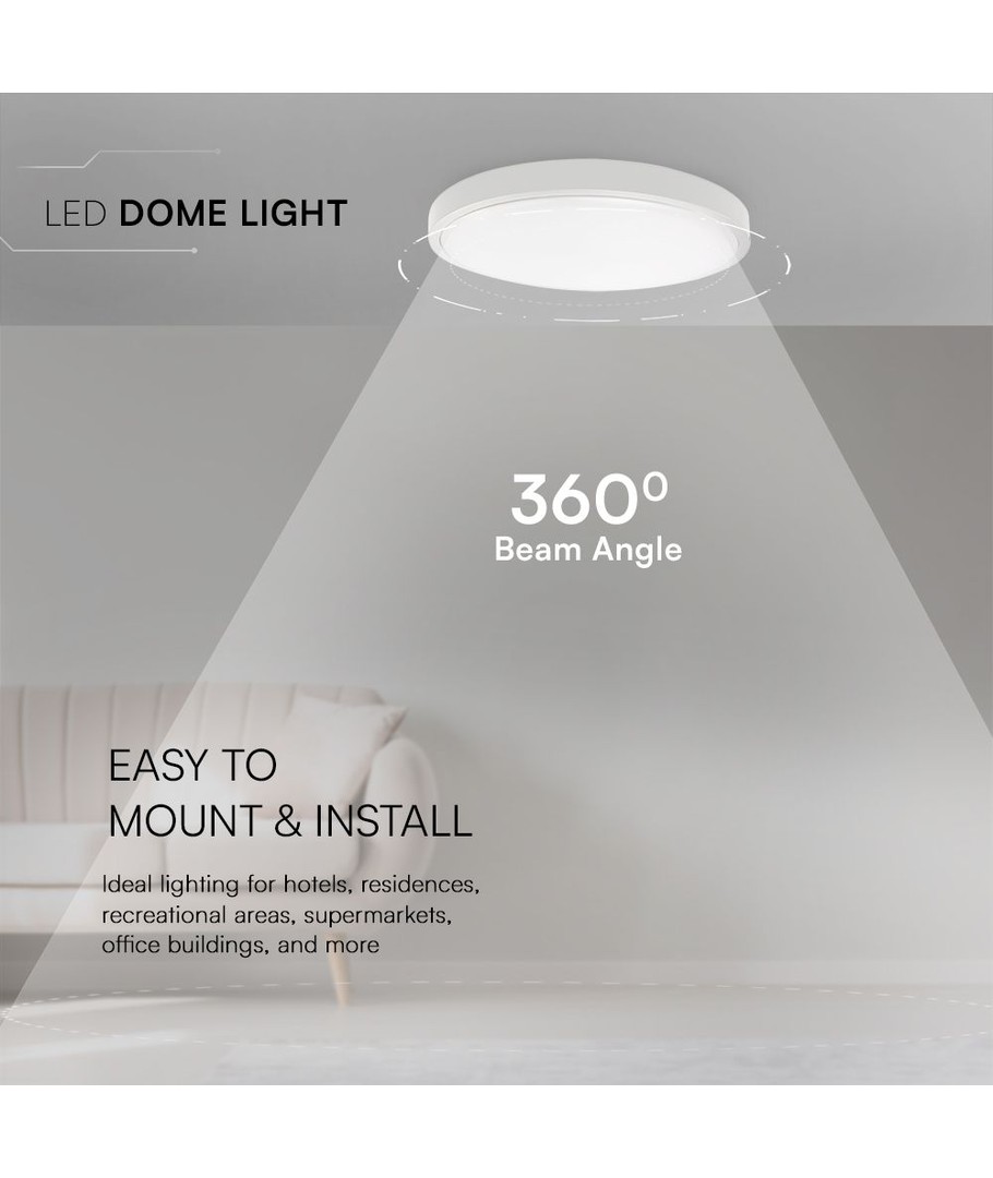 Med integreret lyskilde og en ramme i klassisk hvid, er denne LED kuppel lampe både praktisk og stilfuld. Det er en fremragende investering i belysning, der kombinerer energieffektivitet, holdbarhed og fremragende lyskvalitet.