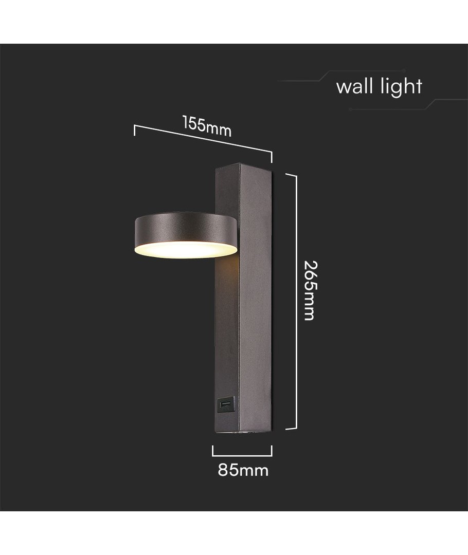 Skab den perfekte belysning i dit hjem med vores stilfulde 8W væglampe. Med en slank og moderne sort akryl finish passer denne lampe perfekt til enhver indretning, og dens USB-funktion gør den yderst praktisk.