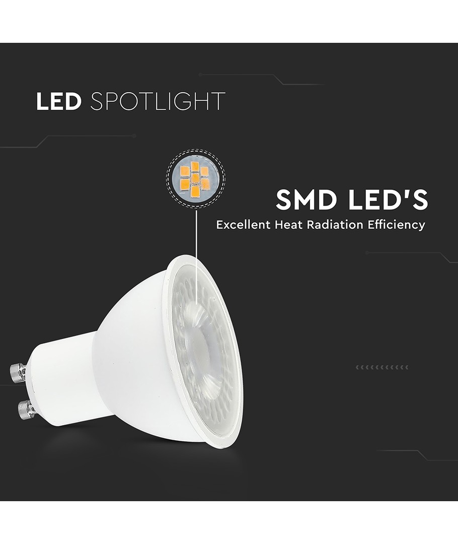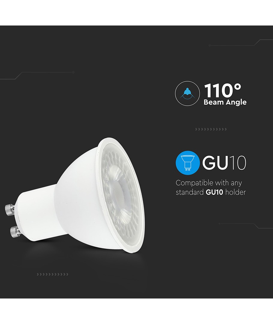 Dette spotlys er ideelt til dem, der ønsker en effektiv og jævn lysfordeling i deres rum. Med en strømstyrke på 7,5W og en GU10 fatning, er dette lys både energieffektivt og let at installere.