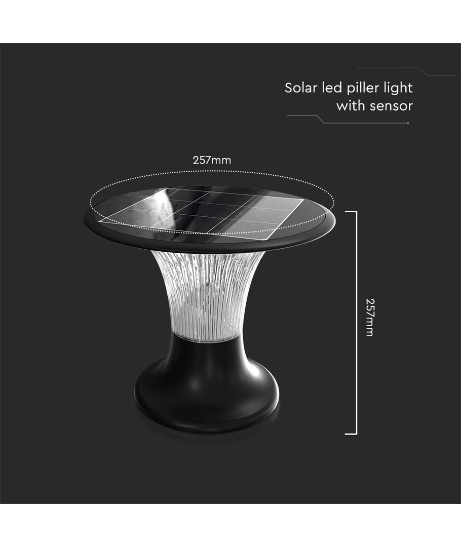 Opgrader dine udendørsområder med denne effektive og stilfulde 15W LED Solarlygte til Søjle. Med dens moderne design i sort og kraftfulde lys, er denne lampe perfekt til at give dine omgivelser et elegant udseende, mens den samtidig sørger for energibesparende belysning.