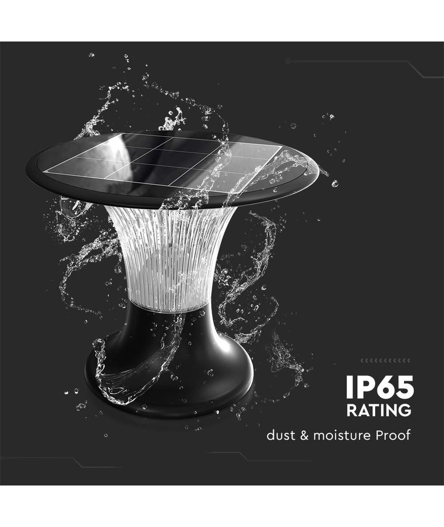 Solarlygten er en del af V-Tac Pro serien, som kommer med en betryggende 3 års producent garanti. Med dimensioner på 257 x 217 mm og en robust konstruktion, sikrer den en lang levetid. Den har en IP65-klassificering, der betyder, at den kan bruges udendørs, da den tåler vandstænk og regn uden problemer.