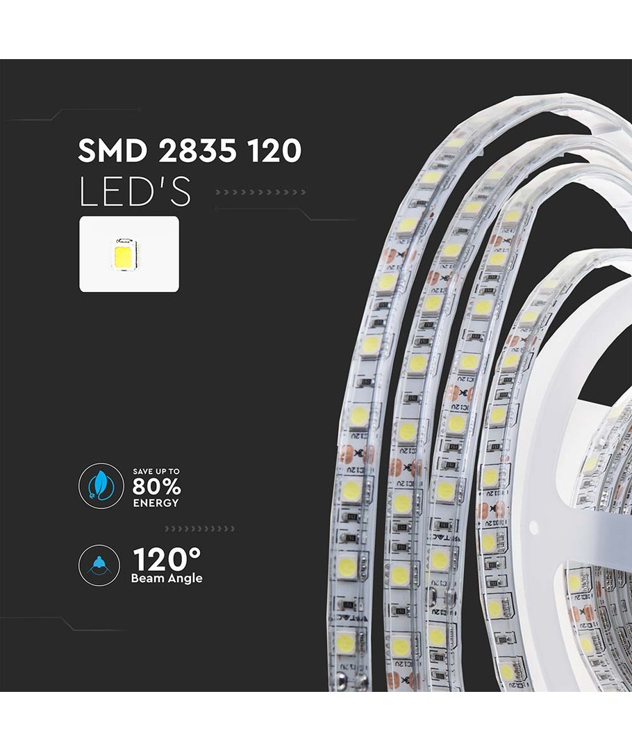 Lyslisten er designet med 120 LED'er pr. meter, hvilket sikrer en høj lysstyrke og en ensartet lysspredning på hele 120 grader. En nøgleværdi ved denne lyslist er dens RA-værdi på 80-85, hvilket betyder, at lyset er af høj kvalitet og fremhæver farver på en naturlig og ægte måde.