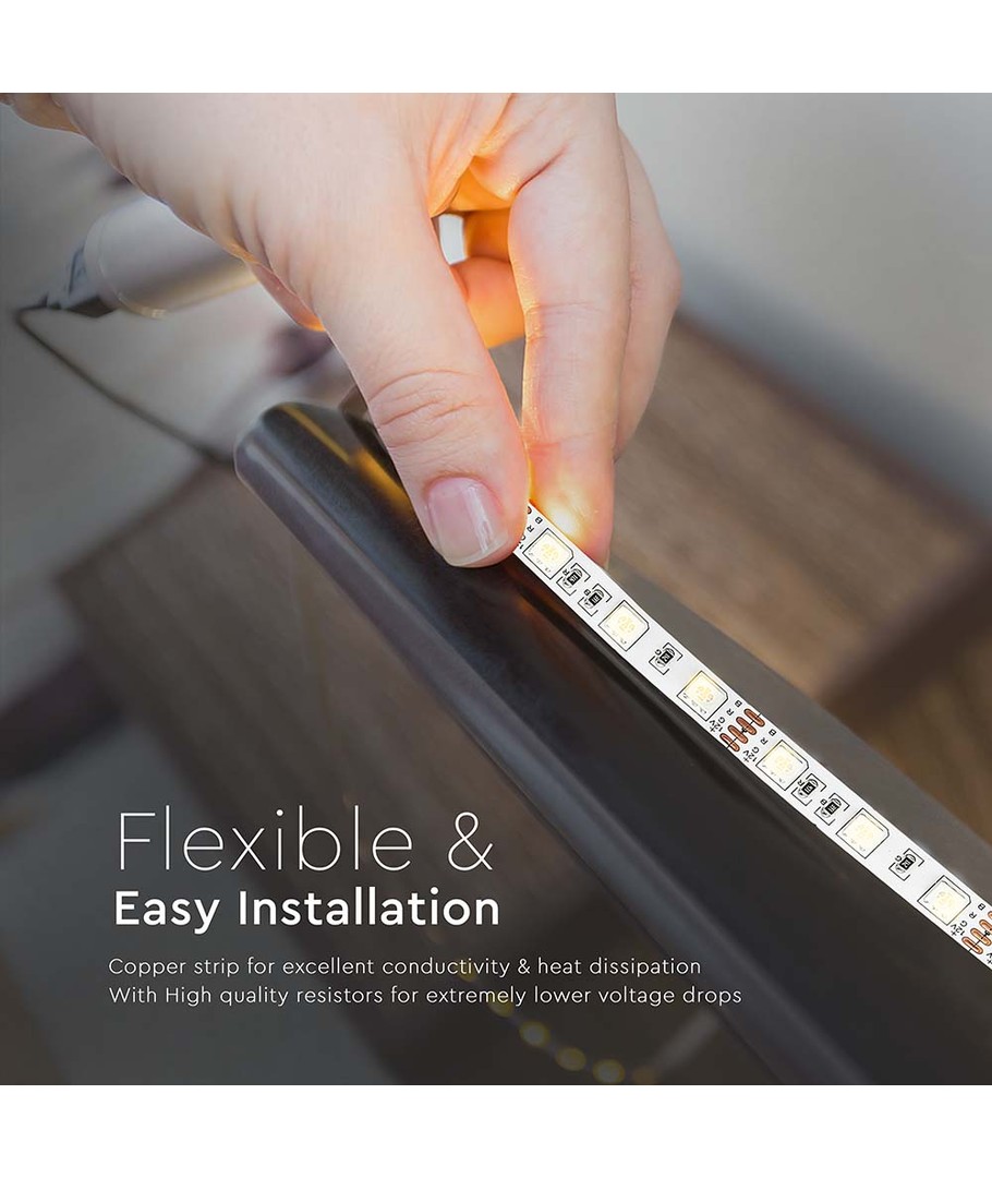 Funktioner:Denne LED stribe lyser i en smykende gul farve, perfekt til at skabe en varm og indbydende atmosfære. Hver stribe har en dimension på 10 mm, hvilket gør den let at installere på trange steder, såsom under skabe eller langs trapper.
