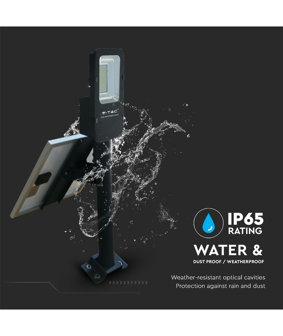 Med en IP65-certificering er denne LED-gadelampe modstandsdygtig over for vandstænk og regn, så den kan fungere effektivt under alle vejrforhold. Den integrerede lyskilde betyder, at du hverken skal bekymre dig om vedligeholdelse eller udskiftning af pærer.