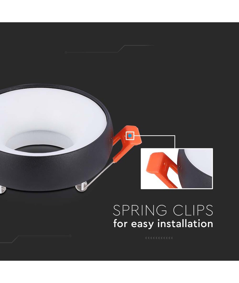 Designet med en rund sort ramme, tilbyder den et moderne look, der passer ind i enhver indretningsstil. Pærens hvide reflektor sikrer optimal lysudsendelse. Med dimensioner på 92 x 53 mm og en anbefalet hul størrelse på 60 mm, er den både kompakt og let at installere.
