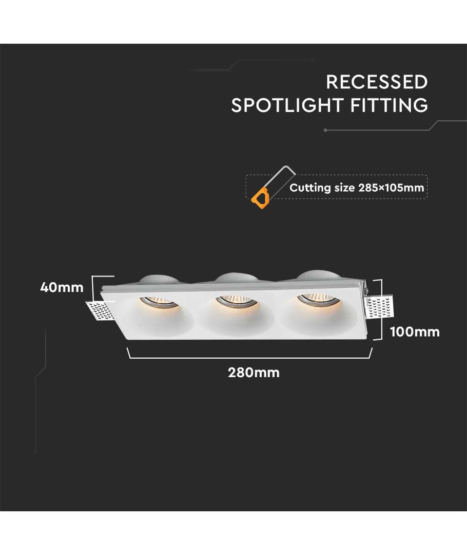 Med en størrelse på 280 x 40 x 100 mm er denne lampe ideel til rum, hvor kompakt og diskret belysning er ønsket. Den nødvendige hullestørrelse er 285 x 105 mm, hvilket gør installationen klar og ligetil for de fleste standard indbygningsforhold.