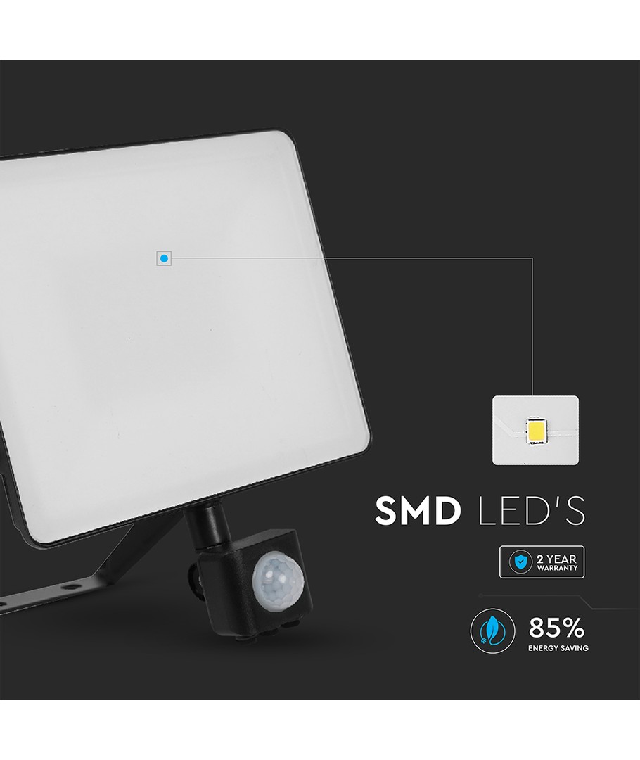 Denne projektør er udstyret med en PIR sensor, der automatisk tænder lyset ved bevægelse, hvilket gør den ideel til sikkerhedsformål og energibesparelser.