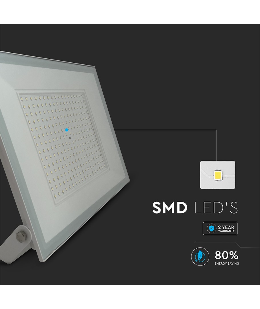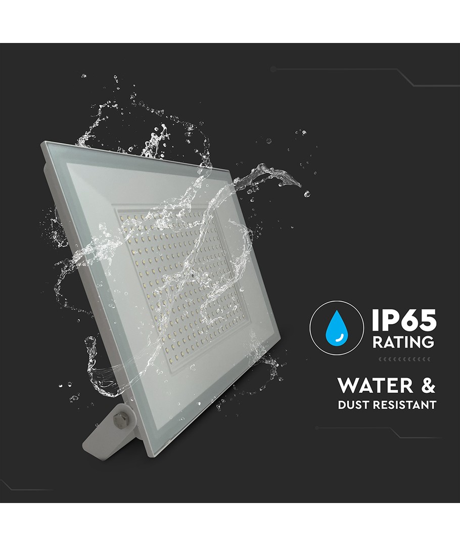Med sin robuste konstruktion og moderne hvide hus, kombinerer denne LED projektør både stil og funktionalitet. Et oplagt valg for dem, der kræver høj kvalitet og effektiv belysning i deres projekter eller installationer.