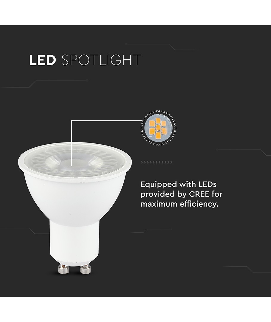 Oplev effektiv og fokuseret belysning med Vt-291 spotlys. Denne pære er designet med en 7.5W GU10 fatning og er udstyret med en Cree chip, kendt for sin pålidelighed og høje ydeevne.