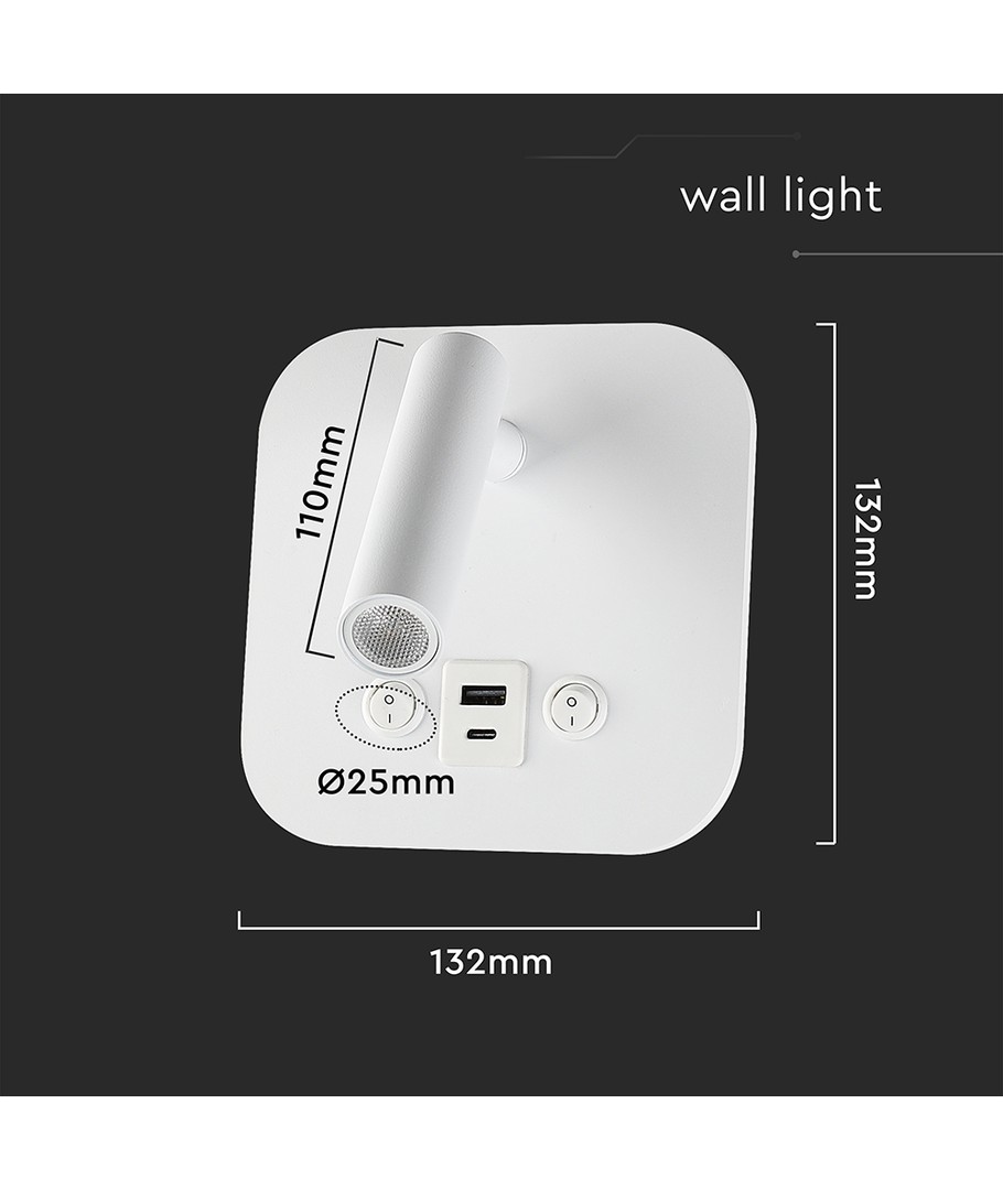 Lampens praktiske dimensioner på 132 x 80 x 132 mm gør den ideel til de fleste sengeborde og vægarealer. Den leveres med en integreret lyskilde, så du ikke behøver at bekymre dig om at skifte pærer.