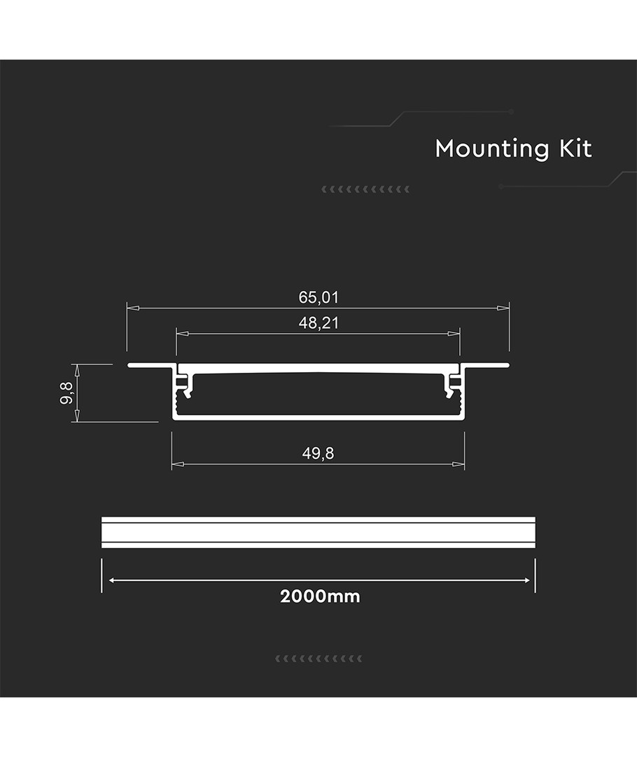 Dette monteringssæt er en del af den populære V-Tac Pro produktlinje og tilbyder kvalitet, du kan stole på. Med det medfølgende diffuserpanel vil dine LED-strips lyse blidt uden at blænde, hvilket gør dem ideelle til atmosfærisk belysning i både opholdsrum og arbejdsområder.