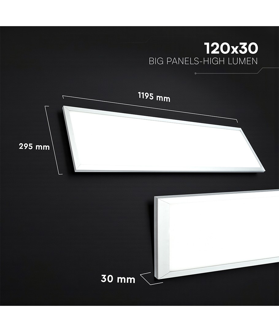 Panelets dimensioner er 1195 x 30 x 295 mm, og det er designet med IP20 beskyttelse, hvilket betyder, at det ikke er modstandsdygtigt over for vand. Installationen er enkel med den integrerede lyskilde, der passer perfekt i de fleste miljøer.
