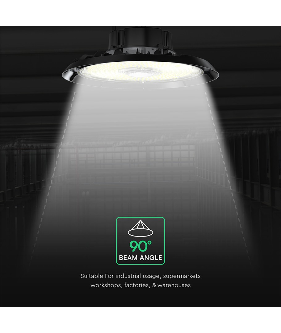 Oplev kraftfuld belysning med VT-91202 LED highbay, der leverer en ekstraordinær lysstyrke på 27.000 lumens. Med en effekt på 200W og en høj spredning på 90 grader, sikrer denne highbay en jævn og effektiv fordeling af lyset i ethvert rum.
