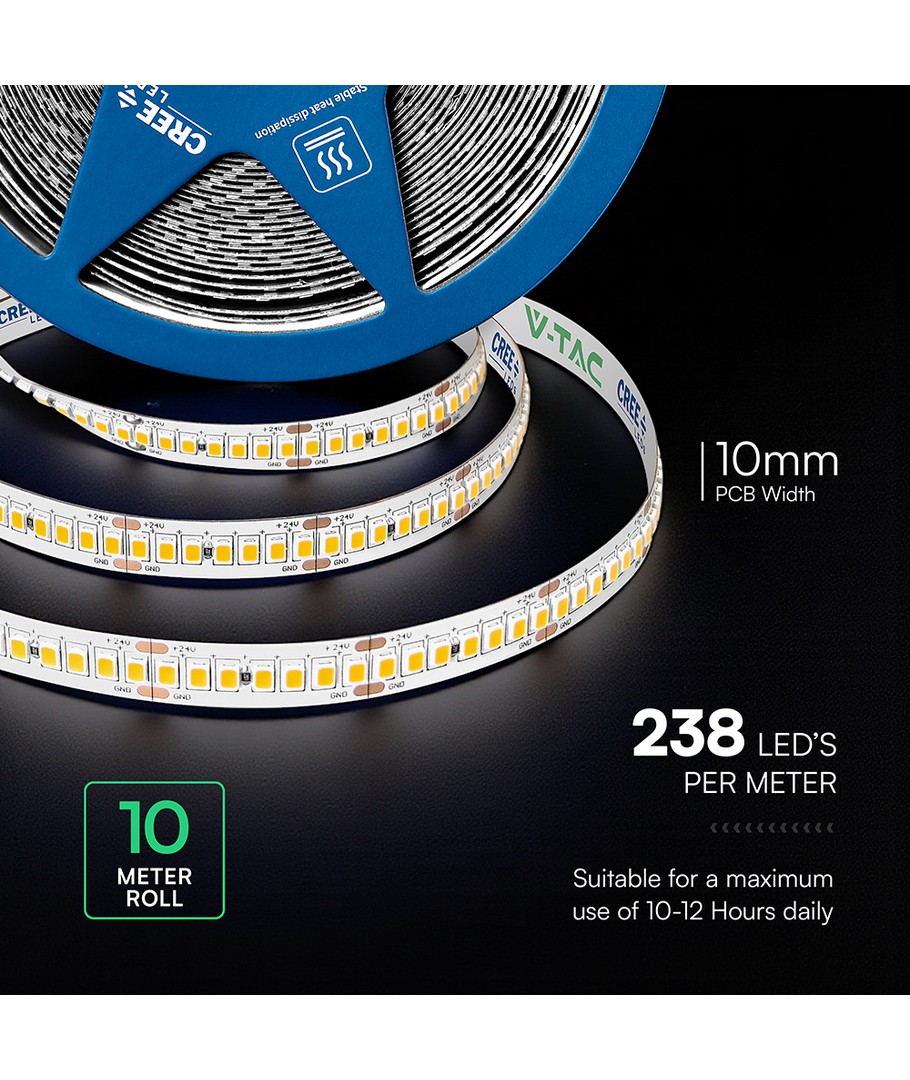 LED lyslisten har en effekt på 18W per meter, hvilket sikrer en kraftig lysstrøm over dens længde. Den er designet med en RA værdi på 90-95, hvilket giver et levende og naturligt lys, ideelt til at fremhæve autentiske farver i både boligindretning og kommercielle miljøer.