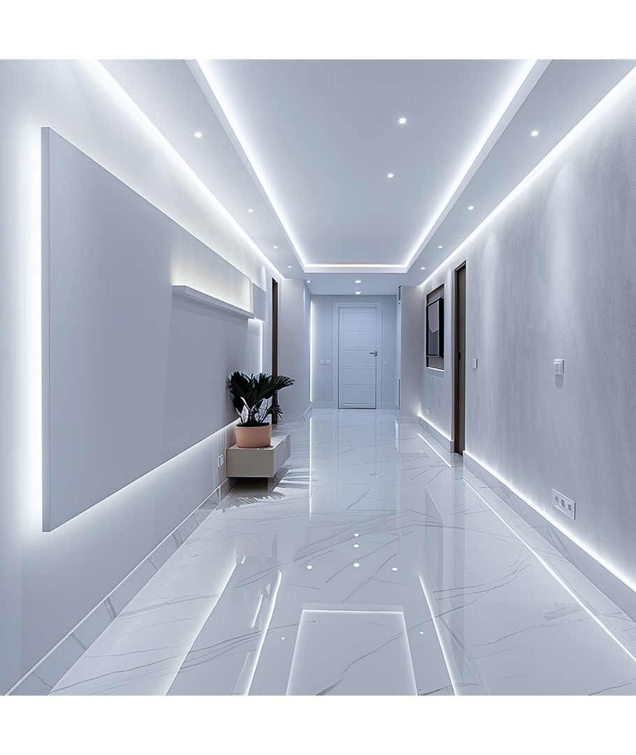 Denne LED lysliste udmærker sig ved ekstra høj lyskvalitet med en RA værdi på 90-95. Denne kvalitet sikrer et levende og naturligt lys, der præsenterer alle farver på den mest sprudlende og ægte måde. Den kolde hvide nuance på 6500K tilfører et køligt lys med et tydeligt blåligt skær, hvilket gør det særligt velegnet til miljøer som malerkabiner, akvarier og specielle dekorationer.