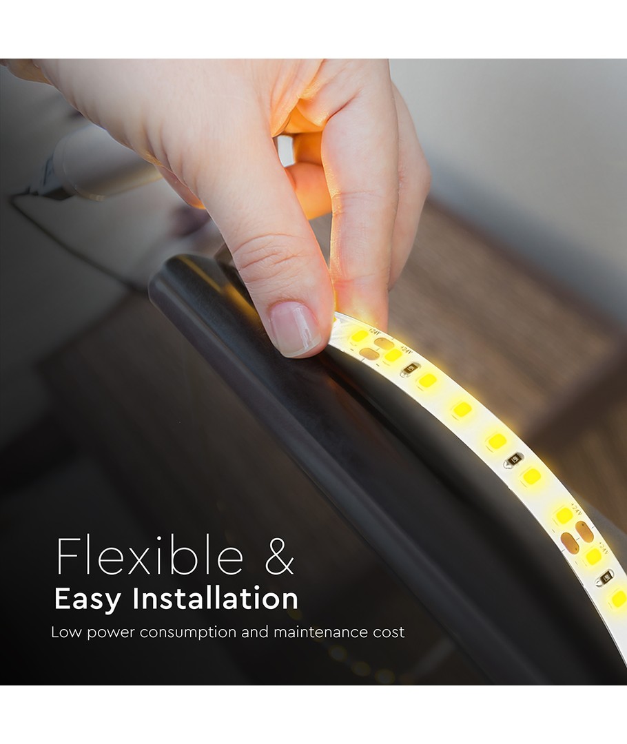 Den kompakte bredde på 8mm gør denne LED lysliste nem at integrere i forskellige opsætninger. Bemærk dog, at produktet har en IP20-klassificering, hvilket betyder, at det ikke er modstandsdygtigt over for vand, og bør derfor anvendes i tørre miljøer.
