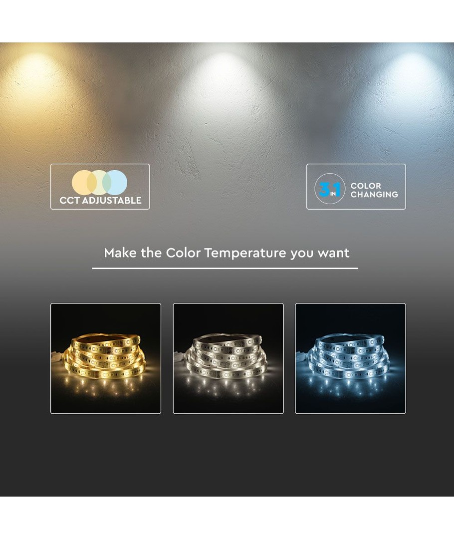 Med den elegante sammensætning af 3-i-1 LED'er og et slankt design på kun 8 mm bredde, kan du nemt integrere dette lysbånd i forskellige indretningsstile. Uanset om du skal fremhæve arkitektoniske detaljer eller skabe en blød, generel belysning, vil dette LED-lysbånd levere en pålidelig og fremragende lyskilde.