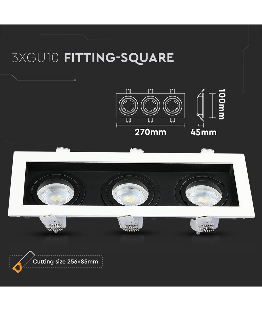 Skab en stilfuld og moderne atmosfære i dit hjem med denne firkantede lampe fra V-Tac Pro serien. Denne belysningsarmatur er designet til at rumme 3xGU10 pærer, hvilket giver rigeligt lys til enhver indretning.