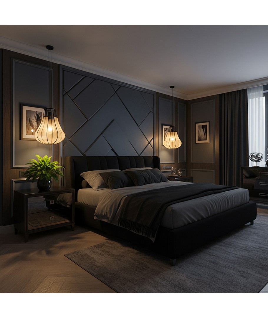 • Materialer: Kombineret stof og metal for elegant udseende.