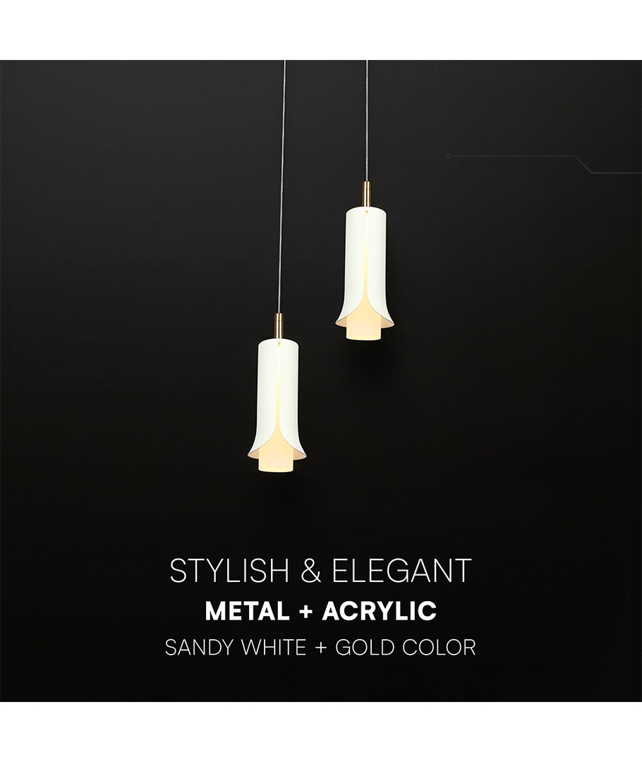 Med sit elegante design i sandhvid og guld integreres denne hængelampe nemt i ethvert interiør. Bemærk den lette installation takket være den integrerede lyskilde, der gør det nemt at få glæde af lampens behagelige lys uden besværlige pærer at skifte.