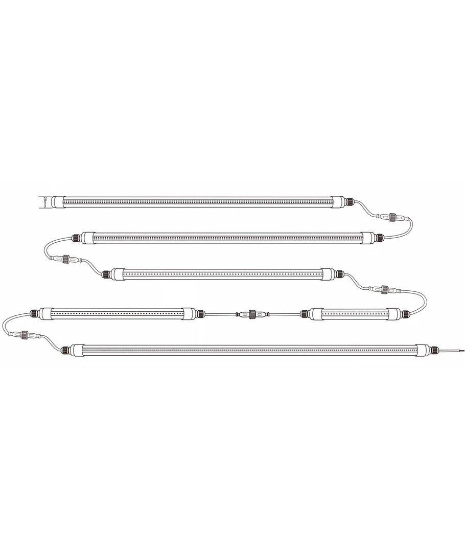 Dimensionerne på hvert armatur er 600 x Ø25 mm, hvilket gør det nemt at inkorporere i både små og større vækstopsætninger. Det integrerede lysdesign betyder, at du ikke behøver tænke på udskiftning af lyskilder, hvilket skaber en brugervenlig oplevelse.